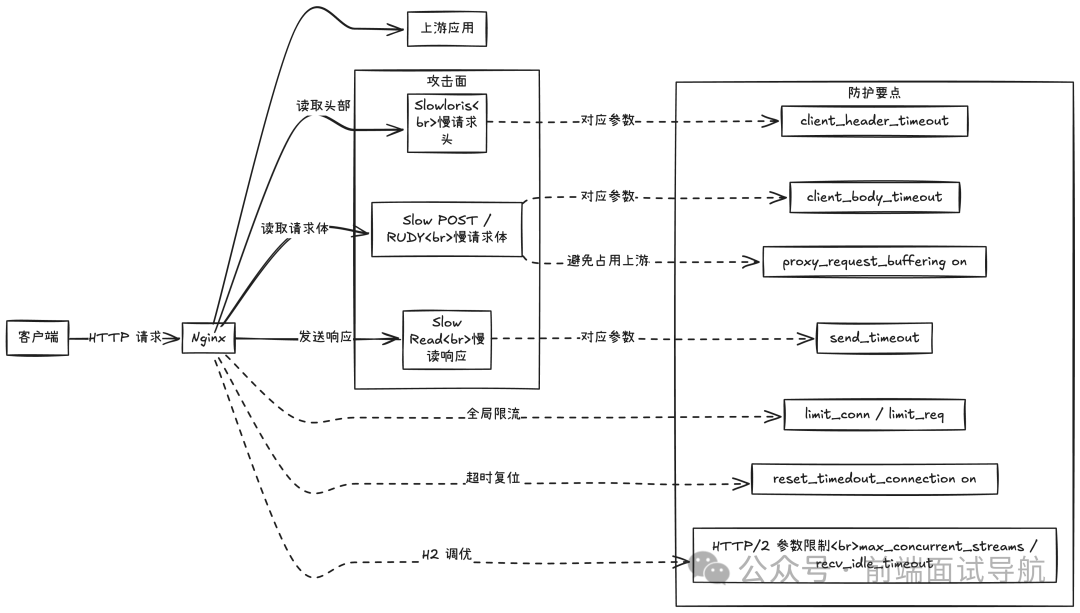 慢速攻擊是一類用很少帶寬就能長期占用服務(wù)器連接/資源的攻擊方式。攻擊者通過非常慢地發(fā)送請求頭或請求體,或極慢地讀取服務(wù)器響應(yīng),讓每個連接都“掛著不結(jié)束”,從而耗盡Web服務(wù)器(或上游應(yīng)用、數(shù)據(jù)庫、代理)的并發(fā)與緩沖資源。典型類型主要有以下幾個方面:Slowloris(慢請求頭):客戶端以極低速率分片發(fā)送HTTP頭部,始...
