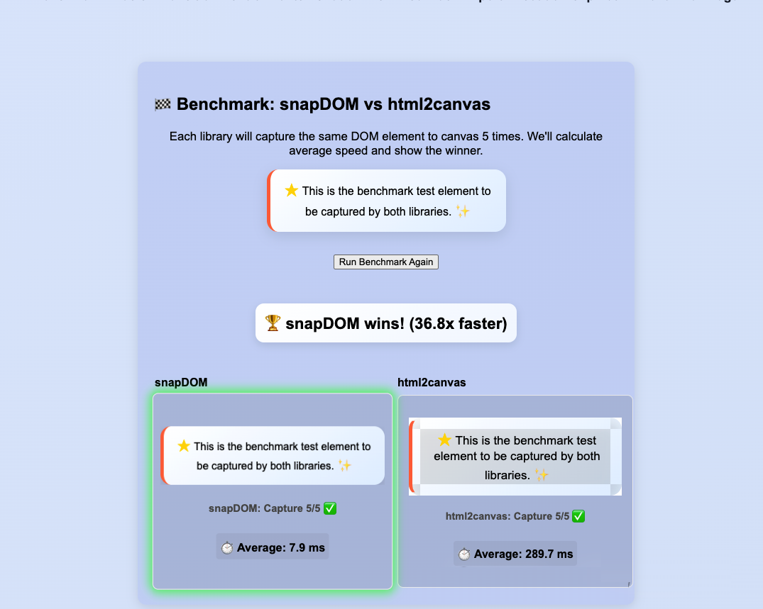 天下苦html2canvas久矣,終于可以好好截個dom圖了前端項目里,把任意HTML片段變成可下載的圖片往往是一件麻煩事:樣式丟失、字體跑偏、跨域圖片報錯、性能拖慢頁面……h(huán)tml2canvas太卡了,而且各種bug,又不更新,實在用的難受。snapDOM正是為了解決這些痛點而生——它來自Zumly團隊,是一個100...