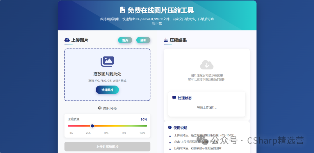 前幾天填寫備案資料時(shí)需要上傳營(yíng)業(yè)執(zhí)照,要求2MB以內(nèi),老板發(fā)給我的文件有十幾MB,無(wú)法上傳,用網(wǎng)上的在線工具,又擔(dān)心安全性。以前也經(jīng)常遇到需要圖片太大的問(wèn)題,基本上都是找別人用vip辦公軟件處理的,每次都要麻煩別人,于是我就想著自己做一個(gè),使用方便還安全。接下來(lái)我給大家介紹一下我的圖片壓縮工具,源碼在結(jié)尾。使用說(shuō)明上傳...