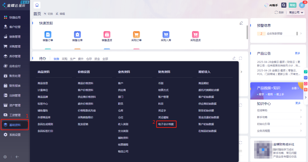 【應(yīng)用場景】金蝶云·星辰電子會(huì)計(jì)檔案,可以讓用戶對(duì)已年度結(jié)賬的財(cái)務(wù)數(shù)據(jù)(憑證、會(huì)計(jì)賬簿、法定報(bào)表等)進(jìn)行歸檔整理,系統(tǒng)會(huì)按年度生成PDF格式的電子文檔,可下載下來,方便后續(xù)查詢、追溯、打印等。金蝶云·星辰標(biāo)準(zhǔn)版、專業(yè)版、旗艦版均支持此功能?!静僮髁鞒獭?.登錄軟件后,基礎(chǔ)資料--電子會(huì)計(jì)檔案--新建檔案,即可進(jìn)入操作界...