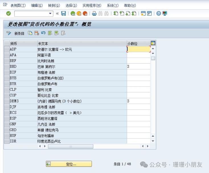 在SAP系統(tǒng)中,所有的數(shù)據(jù)系統(tǒng)默認(rèn)是2位小數(shù),但是針對不同的業(yè)務(wù)需求,對小數(shù)位有不同要求,所以我們就有需要對不同業(yè)務(wù)的不同設(shè)置。我們來看一下具體設(shè)置的步驟。貨幣路徑:SAPNetWeaver-一般設(shè)置-貨幣-為貨幣設(shè)置小數(shù)位數(shù)事務(wù)碼:OY04這個操作是跨客戶端的,所以會影響到整個服務(wù)器上的所有客戶端,系統(tǒng)會給出提示:“...