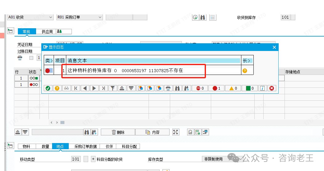 前兩天,有個(gè)用戶(hù)咨詢(xún)了一個(gè)關(guān)于工序外協(xié)收貨的問(wèn)題,在工序外協(xié)業(yè)務(wù)中,到底要不要在系統(tǒng)內(nèi)給外協(xié)供應(yīng)商做組件發(fā)料操作,這個(gè)是哪里決定的呢?我覺(jué)得問(wèn)題分析的過(guò)程挺有意思,今天抽個(gè)時(shí)間和大家嘮一嘮。1業(yè)務(wù)問(wèn)題還原前兩天在群里接到用戶(hù)的一個(gè)截圖問(wèn)題(截圖如下),他說(shuō)在做外協(xié)訂單收貨時(shí)報(bào)錯(cuò)了,提示“物料特殊庫(kù)存OXXXXXXXX不...
