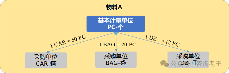 1業(yè)務(wù)問題描述在物料采購(gòu)業(yè)務(wù)中,對(duì)很多物料可能都會(huì)涉及采購(gòu)單位的問題,即一個(gè)物料的庫(kù)存基本計(jì)量單位可能是“副”,但在實(shí)際采購(gòu)業(yè)務(wù)過程中,因?yàn)榘b規(guī)格的不同,采購(gòu)時(shí)可能需要按“捆”、“袋”、“箱”等單位進(jìn)行采購(gòu),那在系統(tǒng)如何按這些不同的采購(gòu)單位進(jìn)行采購(gòu)訂單的創(chuàng)建呢?有的小伙伴會(huì)說,那就啟用物料的采購(gòu)訂單單位,并維護(hù)好和基...