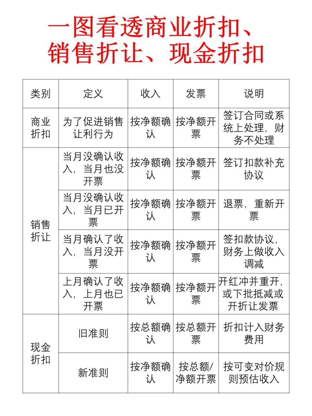 商業(yè)折扣、銷售折讓、現(xiàn)金折扣,容易混亂,分不清楚,一篇文章講透,告訴你1,商業(yè)折扣為了促進銷售給客戶讓利的商業(yè)行為,現(xiàn)實中很普遍的,例如:商場里的打折促銷,商品吊牌價為1000元,8折銷售,那么零售額就是800元。這個時候,含稅收入按照零售額800元來確認,發(fā)票也只要開800元。實際操作上,業(yè)務端簽訂合同或系統(tǒng)錄單操作...