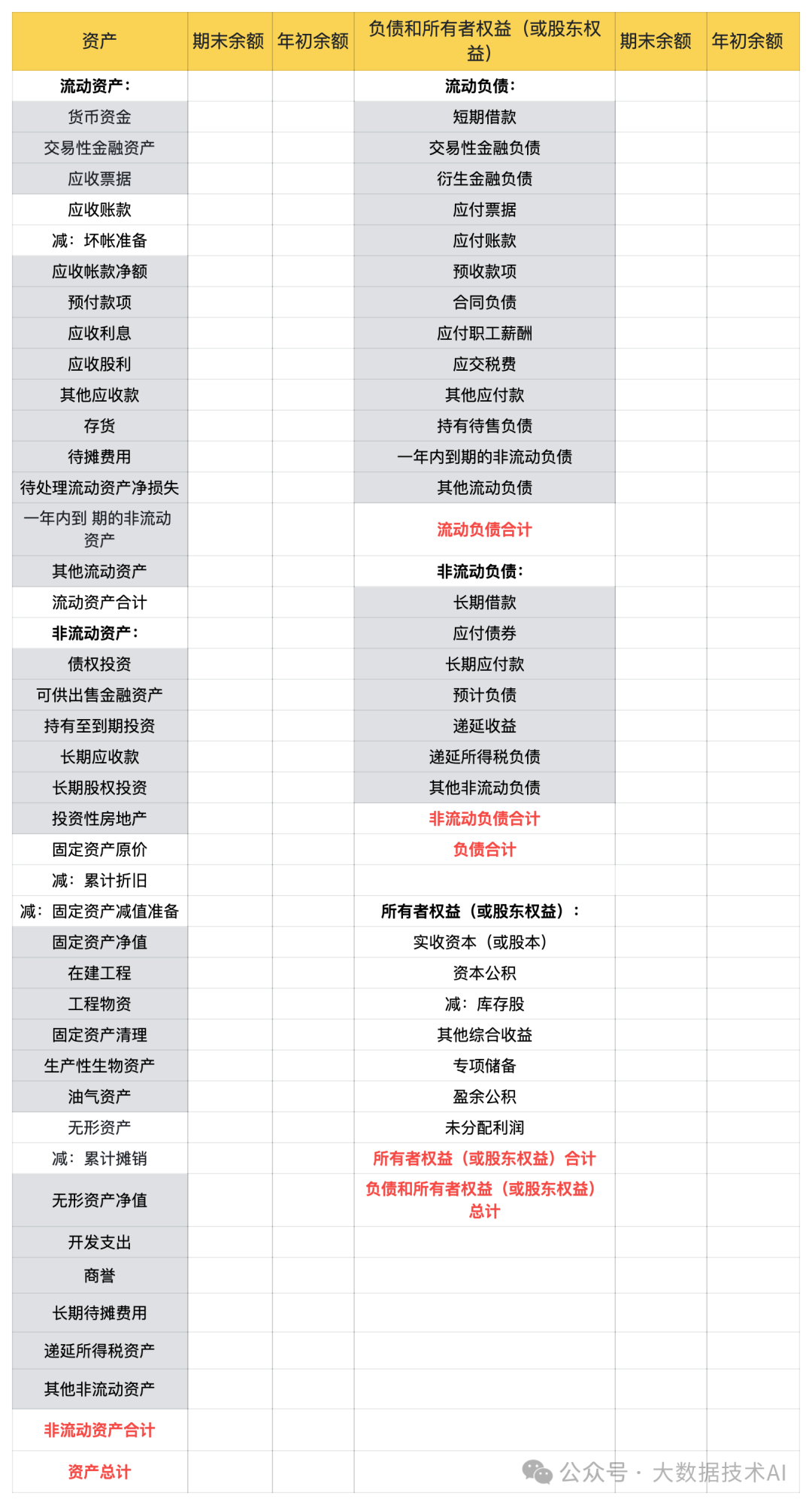 資產負債表基礎樣式資產負債表是企業(yè)財務報表的重要組成部分,它反映了企業(yè)在某一特定日期(通常是期末)的財務狀況。以下是一般企業(yè)資產負債表的基本樣式:資產負債表主要包括以下科目資產部分流動資產貨幣資金:包括企業(yè)庫存現(xiàn)金、銀行存款和其他貨幣資金(如銀行匯票存款、銀行本票存款、信用卡存款等)。這是企業(yè)最具流動性的資產,用于日常...