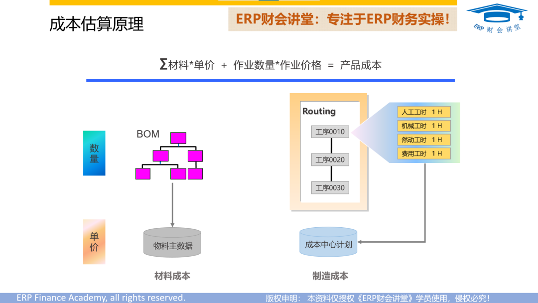 標(biāo)準(zhǔn)成本是SAP中重要成本數(shù)據(jù),新增產(chǎn)品時都需要估算其標(biāo)準(zhǔn)成本。怎么估算?根據(jù)什么估算?估算的原理是怎樣的?如何發(fā)布標(biāo)準(zhǔn)成本?有哪些注意事項?這些,我們在《CO成本管理》課程中詳細(xì)介紹和演示。這里,我們給大家介紹如何分析估算出來的標(biāo)準(zhǔn)成本。產(chǎn)品的標(biāo)準(zhǔn)成本,可用于銷售定價、目標(biāo)成本控制等。標(biāo)準(zhǔn)成本中材料成本是多少?人工是...