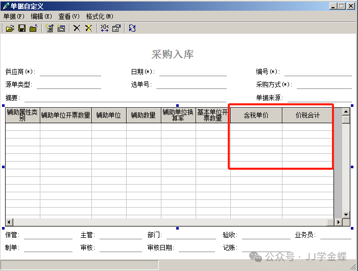 問(wèn)題描述:KIS專(zhuān)業(yè)版的采購(gòu)入庫(kù)單中標(biāo)準(zhǔn)字段沒(méi)有含稅單價(jià)和價(jià)稅合計(jì),企業(yè)實(shí)際管理中部分客戶(hù)需要在采購(gòu)入庫(kù)單上增加含稅單價(jià)和價(jià)稅合計(jì),方便實(shí)際的業(yè)務(wù)管理。解決方法:KIS專(zhuān)業(yè)版的單據(jù)自定義提供現(xiàn)成的解決辦法,具體實(shí)現(xiàn)方法如下:1、在【開(kāi)始】-【所有程序】-【金蝶KIS云·專(zhuān)業(yè)版】打開(kāi)系統(tǒng)工具,在“輔助工具”頁(yè)簽打開(kāi)“單據(jù)...