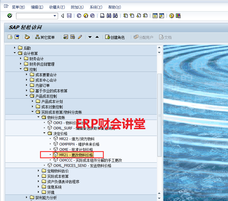 大家有沒有遇見這種情況,MM01創(chuàng)建物料主數(shù)據(jù)之后,發(fā)現(xiàn)價(jià)格錯了,想要更改,但是MM02進(jìn)去價(jià)格卻是灰色的,更改不了,根本改不了!別著急,雖然MM02不能更改價(jià)格,但是我們可以通過MR21更改物料價(jià)格。本文介紹MR21更改物料價(jià)格,菜單路徑如下。MR21更改價(jià)格之前,MM03查看物料1010000043的計(jì)價(jià)方式為移動...