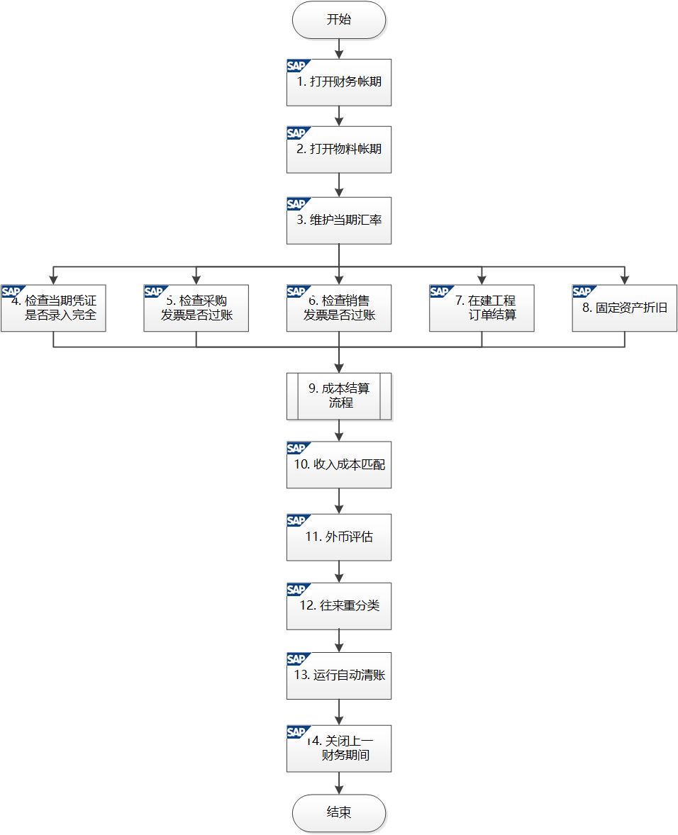 本文給大家介紹一般制造型企業(yè)SAP月結(jié)的基本步驟,以及每步驟的作用,關(guān)于每一步的具體操作、原理、運行結(jié)果、如何檢查等,我們在《CO成本管理》課程中詳細介紹。一般生產(chǎn)型企業(yè)的月結(jié)流程如下:其中,成本結(jié)算流程如下:使用SAP的企業(yè)一般是在月初對上月進行月結(jié),通常在月初的3個工作日內(nèi)完成,不同企業(yè)可能有不同的規(guī)定,一般集團型...