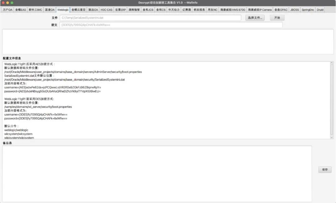 一、工具介紹DecryptTools是一款面向滲透測(cè)試和后滲透階段設(shè)計(jì)的綜合加解密工具,其核心功能在于快速解密各類(lèi)系統(tǒng)加密數(shù)據(jù)(如數(shù)據(jù)庫(kù)連接字符串、用戶憑證等),同時(shí)支持AES、RSA、SM4等多種加密算法及逆向提取的專(zhuān)有加解密邏輯。該工具覆蓋了20余種主流OA系統(tǒng),包括萬(wàn)戶OA、用友NC、金蝶云星空、致遠(yuǎn)OA、??低?..