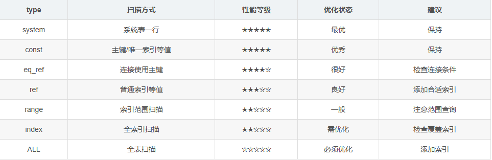 掌握MySQL的EXPLAIN命令是數(shù)據(jù)庫性能優(yōu)化的必備技能,而其中的type字段更是分析查詢性能的關(guān)鍵指標(biāo)。本文將帶你深入理解七種type類型的含義、使用場景和優(yōu)化策略。