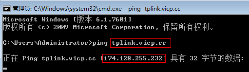 3、DNS解析問題(僅針對域名訪問方式) 可能原因:路由器上已經(jīng)成功登錄動(dòng)態(tài)域名,該動(dòng)態(tài)域名解析的IP地址不是路由器WAN口IP地址,導(dǎo)致域名無法訪問。 解決辦法:外網(wǎng)用戶確認(rèn)動(dòng)態(tài)域名解析的IP地址為路由器WAN口IP地址。確認(rèn)方式:在外網(wǎng)的電腦上ping該動(dòng)態(tài)域名,將返回的IP地址與WAN口IP地址進(jìn)行對比即可。如下圖: 如IP地址對比不相同,可以嘗試修改外網(wǎng)電腦的DNS服務(wù)器地址為8.8.8.8嘗試。