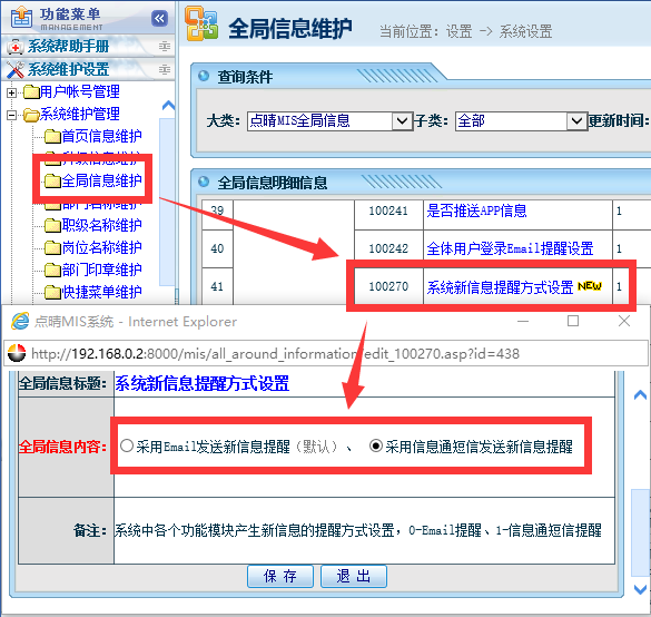 點晴永久免費(fèi)OA最新升級說明-在現(xiàn)有Email的基礎(chǔ)上增加信息通短信手機(jī)APP提醒方式