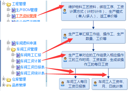 本功能操作流程圖如下: ![]() 左邊是相應(yīng)操作菜單位置,右邊是流程及功能說明。 特別說明,為了進(jìn)行以上操作,需要先給相關(guān)人員賦予相應(yīng)菜單操作權(quán)限。 第一步: 進(jìn)入ERP系統(tǒng)-》工程管理-》工藝資料管理,維護(hù)物料工藝資料,綁定工序、工資計(jì)算方式(計(jì)時(shí)/計(jì)件)、生產(chǎn)模式(單人/多人)、返工單價(jià)等: ![]() 第二步: 進(jìn)入ERP系統(tǒng)-》生產(chǎn)管理-》車間工資管理-》車間用工匯報(bào),找到需要計(jì)算工人工資的單據(jù),綁定工作組、操作工、生產(chǎn)時(shí)間/數(shù)量等: ![]() 特別說明: 首次使用本功能時(shí),系統(tǒng)會(huì)自動(dòng)將以往生產(chǎn)工單全部標(biāo)識為“不匯報(bào)”,以免干擾以后匯報(bào)。如果需要對本功能上線前的生產(chǎn)工單也進(jìn)行工資管理,需要在上面將匯報(bào)狀態(tài)改為:全部,然后點(diǎn)擊查詢,將需要進(jìn)行工資管理的的生產(chǎn)工單匯報(bào)狀態(tài)改為“待匯報(bào)”,然后重新點(diǎn)擊查詢,就可以進(jìn)行工資匯報(bào)管理了。 第三步: 進(jìn)入ERP系統(tǒng)-》生產(chǎn)管理-》車間工資管理-》車間工資計(jì)算,系統(tǒng)會(huì)自動(dòng)將剛剛綁定完畢的當(dāng)日訂單全部顯示出來,操作人員在后面補(bǔ)充上操作工的工作時(shí)間/生產(chǎn)數(shù)量、工資系數(shù),系統(tǒng)會(huì)自動(dòng)將該工作組的工資按照比例分配到各個(gè)操作工: ![]() 第四步: 進(jìn)入ERP系統(tǒng)-》生產(chǎn)管理-》車間工資管理-》車間工資日報(bào)表,剛剛上面已經(jīng)完成了所有必須的信息,本頁面可以自動(dòng)顯示該工作日的所有工作組及工人的工資日報(bào)表: ![]() 點(diǎn)擊Excel按鈕,就可以將當(dāng)日工人工資日報(bào)表導(dǎo)出到Excel了;點(diǎn)擊打印按鈕,就可以將當(dāng)日工人工資日報(bào)表打印出來張貼了: ![]() 打印頁面支持設(shè)置多個(gè)不同的打印模板,實(shí)現(xiàn)多個(gè)不同車間的打印需求。 第五步: 進(jìn)入ERP系統(tǒng)-》生產(chǎn)管理-》車間工資管理-》車間工資統(tǒng)計(jì)表,本頁面可以自動(dòng)顯示該所有工作組及工人按照年月日及工作組或操作人的工資統(tǒng)計(jì)表: ![]() 點(diǎn)擊Excel按鈕,就可以將統(tǒng)計(jì)表導(dǎo)出到Excel了;點(diǎn)擊打印按鈕,就可以將統(tǒng)計(jì)表打印出來張貼了: ![]() 打印頁面支持設(shè)置多個(gè)不同的打印模板,可以打印多種不同的表頭、表尾效果的統(tǒng)計(jì)表,滿足不同車間打印需求。 點(diǎn)晴模切ERP更多信息:http://moqie.clicksun.cn,聯(lián)系電話:4001861886 該文章在 2019/7/1 15:42:15 編輯過 |