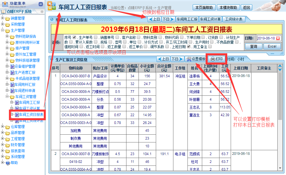 點(diǎn)晴模切ERP車間工人工作匯報(bào)之工資計(jì)算及統(tǒng)計(jì)報(bào)表操作教程