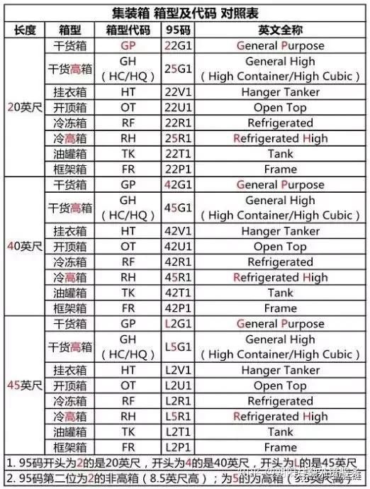 3)95碼第一位數(shù)字為2的是20英尺,開頭為4的是40英尺,開頭為L(zhǎng)的是45英尺。