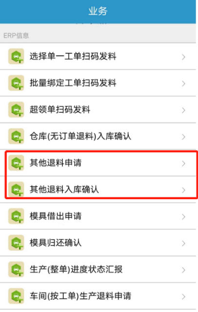 ![]() 把無訂單退料入庫確認權(quán)限開啟 如下圖: 把其他退料入庫管理開啟 如下圖: 然后登錄APP后,就能看到 如下圖:
