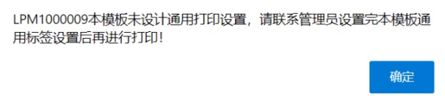 :點(diǎn)晴ERP-彈出提示:本模板未設(shè)計(jì)通用打印設(shè)置,請聯(lián)系管理員設(shè)置完本模板通用標(biāo)簽設(shè)置后再進(jìn)行打??!![]() 情況描述:在打印標(biāo)簽時(shí)選擇其他模板后,點(diǎn)出提示:本模板未設(shè)計(jì)通用打打印設(shè)置,請聯(lián)系管理員設(shè)置完本模板通用標(biāo)簽設(shè)置后再進(jìn)行打印! 如下圖: