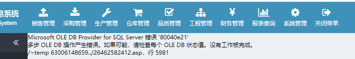 點(diǎn)晴模切ERP-點(diǎn)擊提交單據(jù)后錯(cuò)誤提示:多步 OLE DB 撰作產(chǎn)生錯(cuò)誤。如果可能,請(qǐng)檢查每個(gè) OLE DB 狀態(tài)值。沒(méi)有工作被完成