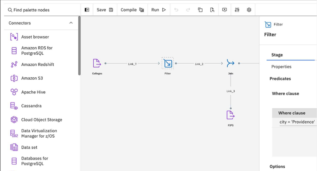 5.DataStageDataStage,即IBM WebSphere DataStage,是一套專門對多種操作數(shù)據(jù)源的數(shù)據(jù)抽取、轉(zhuǎn)換和維護過程進行簡化和自動化,并將其輸入數(shù)據(jù)集市或數(shù)據(jù)倉庫目標(biāo)數(shù)據(jù)庫的集成工具,可以從多個不同的業(yè)務(wù)系統(tǒng)中,從多個平臺的數(shù)據(jù)源中抽取數(shù)據(jù),完成轉(zhuǎn)換和清洗,裝載到各種系統(tǒng)里面。 其中每步都可以在圖形化工具里完成,同樣可以靈活地被外部系統(tǒng)調(diào)度,提供專門的設(shè)計工具來設(shè)計轉(zhuǎn)換規(guī)則和清洗規(guī)則等,實現(xiàn)了增量抽取、任務(wù)調(diào)度等多種復(fù)雜而實用的功能。其中簡單的數(shù)據(jù)轉(zhuǎn)換可以通過在界面上拖拉操作和調(diào)用一些 DataStage 預(yù)定義轉(zhuǎn)換函數(shù)來實現(xiàn),復(fù)雜轉(zhuǎn)換可以通過編寫腳本或結(jié)合其他語言的擴展來實現(xiàn),并且 DataStage 提供調(diào)試環(huán)境,可以極大提高開發(fā)和調(diào)試抽取、轉(zhuǎn)換程序的效率。 Datastage 操作界面