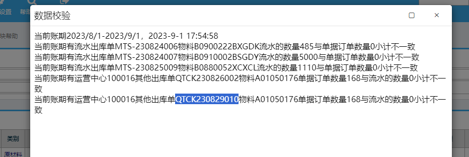 [點(diǎn)晴模切ERP]月度結(jié)存數(shù)據(jù)校驗提示異常