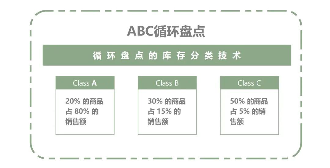 2. ABC循環(huán)盤點(diǎn) ABC循環(huán)盤點(diǎn)是一種流行的循環(huán)盤點(diǎn)方法,其中倉庫中的庫存分為“A”、“B”和“C”變體。這種方法也稱為帕累托分析。帕累托分析是組織思想和提供結(jié)構(gòu)化解決方案的過程。它基于這樣的原則:80%的影響是由族中20%的元素引起的。因此,需要更多地關(guān)注產(chǎn)生最大影響的元素。 當(dāng)應(yīng)用于庫存盤點(diǎn)時,ABC是一種產(chǎn)品類別,其中A是帶來最大收入的產(chǎn)品,而B和C是相對滯銷的產(chǎn)品,利潤率較低,收入也較低。 ABC循環(huán)盤點(diǎn)流程更加重視具有戰(zhàn)略重要性的貨物,并且比其他貨物更頻繁地盤點(diǎn)它們。此分類基于與單個庫存類別相關(guān)的各種其他因素: