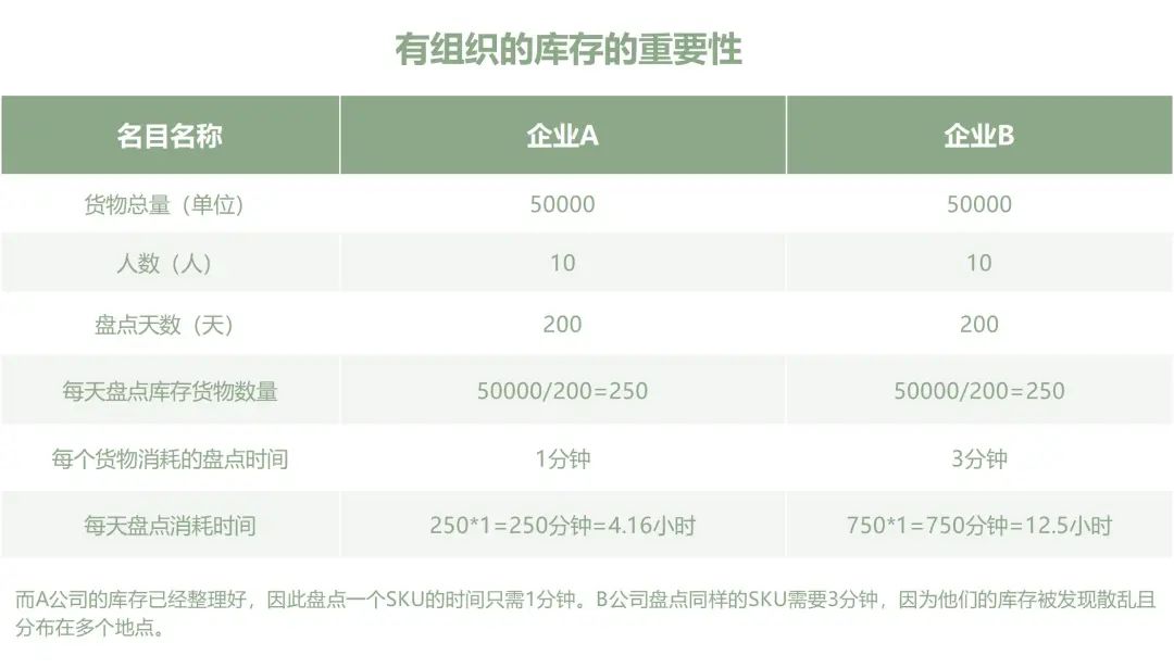 十三、循環(huán)盤點(diǎn)常見問題解答1、循環(huán)盤點(diǎn)的目的是什么? 循環(huán)盤點(diǎn)通過定期盤點(diǎn)選定的產(chǎn)品,幫助公司確認(rèn)其倉庫管理系統(tǒng)(WMS)中反映的庫存水平的準(zhǔn)確性。 這可以減少庫存損失、意外缺貨和過時的庫存,從而導(dǎo)致收入損失和客戶不滿意。與實(shí)物盤點(diǎn)不同,您可以在正常業(yè)務(wù)操作期間執(zhí)行循環(huán)盤點(diǎn)。 2、循環(huán)盤點(diǎn)有哪些類型? 循環(huán)盤點(diǎn)的方法有很多種,但最流行的方法會優(yōu)先盤點(diǎn)那些帶來最多收入或最常訂購的商品。 其他策略根據(jù)物理位置或隨機(jī)選擇遍布整個倉庫的SKU來盤點(diǎn)物品數(shù)量。公司還可以結(jié)合使用不同的盤點(diǎn)方法。 3、什么是 WMS 中的循環(huán)盤點(diǎn)? WMS(倉庫管理系統(tǒng))可以使循環(huán)盤點(diǎn)成為員工日常工作的一部分。它可以提醒倉庫或商店的工作人員進(jìn)行盤點(diǎn),并告訴他們當(dāng)天要盤點(diǎn)哪些物品。 他們可以在檢查貨架時掃描每件商品或輸入現(xiàn)有數(shù)量,然后 WMS 可以將其與庫存管理系統(tǒng)中的數(shù)字進(jìn)行比較。 4、什么是零售業(yè)的循環(huán)盤點(diǎn)? 零售循環(huán)盤點(diǎn)遵循與其他行業(yè)盤點(diǎn)相同的原則,但它們可能發(fā)生在商店而不僅僅是倉庫。 在商店中,將預(yù)期庫存水平與實(shí)際可用庫存水平進(jìn)行比較尤其重要,因?yàn)樯痰杲?jīng)常成為盜竊目標(biāo)。培訓(xùn)員工如何執(zhí)行問題的盤點(diǎn)和跡象非常重要。 5、何時應(yīng)執(zhí)行循環(huán)盤點(diǎn)? 循環(huán)盤點(diǎn)通常按月或按季度進(jìn)行,但有些企業(yè)可能每周甚至每天進(jìn)行少量盤點(diǎn)。這通常取決于您銷售的商品類型和工作環(huán)境。 但循環(huán)盤點(diǎn)比完整的實(shí)物盤點(diǎn)要頻繁得多,后者可能每年只發(fā)生一兩次。 十四、倉庫布局和有組織的庫存管理對循環(huán)盤點(diǎn)的重要性:雖然上述所有實(shí)踐和策略都可以使您成為循環(huán)盤點(diǎn)專家,但糟糕的倉庫管理可能會讓您的循環(huán)盤點(diǎn)過程嚴(yán)重失敗。如果您的倉庫一片混亂且?guī)齑嫖恢貌患?,那么循環(huán)盤點(diǎn)可能會成為一項(xiàng)壓力很大的工作。 請參閱以下 A 和 B 兩家公司的示例: