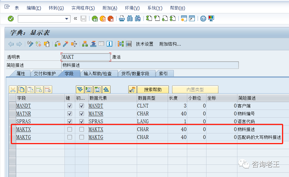 實現(xiàn)方式:物料描述字段+物料主數(shù)據(jù)增強字段具體內(nèi)容:物料描述字段存儲40個字的短描述;超長的物料描述放入增強的長描述字段中。優(yōu)點:實現(xiàn)技術(shù)很成熟,簡單實用,通過在物料主數(shù)據(jù)后臺表附加結(jié)構(gòu)字段,并在基本視圖中增加增強字段,字段長度可以自由定義。缺點:無法在標準業(yè)務(wù)憑證界面中顯示長描述字段,需在定制開發(fā)報表中增加此物料增強字段。