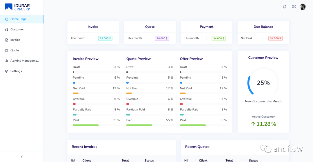 1)功能豐富:Metasfresh包含了多個功能模塊,涵蓋了財務、銷售、采購、庫存、生產(chǎn)制造、人力資源等多個業(yè)務領域。它提供了全面的ERP解決方案。 2)開源許可:Metasfresh是一個開源項目,采用GNU通用公共許可證(GNU General Public License,GPL)。這意味著用戶可以自由使用、修改和分發(fā)軟件。 3)技術棧:Metasfresh的后端主要使用Java編寫,前端采用了Angular框架。它通常使用PostgreSQL數(shù)據(jù)庫作為數(shù)據(jù)存儲后端。 4)模塊化設計:Metasfresh采用模塊化的設計理念,用戶可以選擇性地啟用或禁用不同的模塊,以滿足其特定的業(yè)務需求。這也使得系統(tǒng)更加靈活和可擴展。 5)系統(tǒng)界面:Metasfresh的用戶界面被設計為直觀、現(xiàn)代且易于使用。用戶可以通過Web瀏覽器訪問系統(tǒng),執(zhí)行各種任務。 6)云集成:Metasfresh支持云集成,用戶可以選擇在云服務上部署系統(tǒng)。這提供了更靈活的部署選項,特別適用于不想承擔自己服務器管理的企業(yè)。 NO8.Ever Gauzy ERP Ever-Gauzy的功能主要包括:會計管理、庫存管理、生產(chǎn)管理和人力資源管理等。它還提供了一個移動的應用程序,供隨時隨地訪問。 ![]() 圖8:Ever Gauzy ERP系統(tǒng)界面 功能特征: 包括一個全面的人力資源管理模塊,具有員工入職、工資管理和績效跟蹤功能。內(nèi)置項目管理工具使企業(yè)能夠有效地管理和跟蹤他們的項目。 NO9.IDURAR ERP 更多信息:IDURAR Open Source ERP CRM · GitHub IDURAR是一個開源的ERP、CRM系統(tǒng),其主要功能包括:發(fā)票、庫存、會計、人力資源等業(yè)務管理,系統(tǒng)基于Node.js、MongoDb、React.js開發(fā),支持定制化。