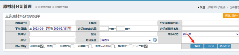 :點(diǎn)晴ERP-分切單結(jié)案操作流程![]() 點(diǎn)擊進(jìn)入 如下圖: