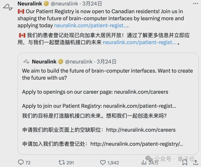 在推文中,他稱一開始(由于意念操作)還被平臺(tái)判定為機(jī)器人,然后就被禁了。 最終還是馬斯克幫他解的封。 不過對(duì)此,他似乎倒是“毫不在意”,稱自己就是一個(gè)不折不扣的機(jī)器人。 ——這不,在Neuralink內(nèi)部會(huì)議亮相時(shí),他開口的第一句就“搞事”: Hello, Humans。 當(dāng)然,后面阿堡解釋:自己和大伙沒什么兩樣,只不過帶一點(diǎn)硬件,多一點(diǎn)計(jì)算能力啦。 OMT 這兩天,Neuralink又開始大力招志愿者了,范圍也從美國擴(kuò)展到了加拿大。