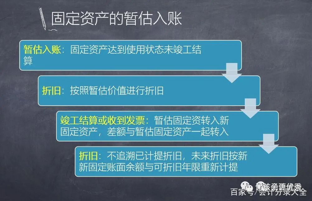 貸:應(yīng)付賬款——XX供應(yīng)商 ——暫估 10000 ② 紅字沖回暫估入庫 貸:應(yīng)付賬款——XX供應(yīng)商 ——暫估/無票 -10000 應(yīng)交稅費-應(yīng)交增值稅-進項稅額 1560 貸:應(yīng)付賬款——XX供應(yīng)商 13560 貸:原材料 -5000 貸:原材料 6000 固定資的暫估入賬原因,相比存貨更復(fù)雜。在固定資產(chǎn)已經(jīng)使用,但在建工程仍未竣工;或者固定資產(chǎn)購入后已經(jīng)開始使用,但發(fā)票未收到,賬款未于對方結(jié)算。會導(dǎo)致固定資產(chǎn)的現(xiàn)有會計成本與實際不符,由于最終結(jié)算還未完成,所以只能采用暫估入賬。 而固定資產(chǎn)投入使用后,下月即開始折舊,即使有該項固定資產(chǎn)未入賬的款項,折舊不能等到固定資產(chǎn)結(jié)算完后進行,需要按現(xiàn)成本折舊。等工程結(jié)算后或?qū)嶋H發(fā)票到來后,以發(fā)票金額入賬。暫估金額與實際發(fā)生金額之間的差異不追溯,只調(diào)整以后期間折舊費用。