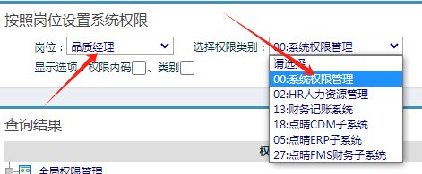 進入界面后-選擇需要開權限的崗位-選擇權限類別為'系統(tǒng)權限管理',如下圖