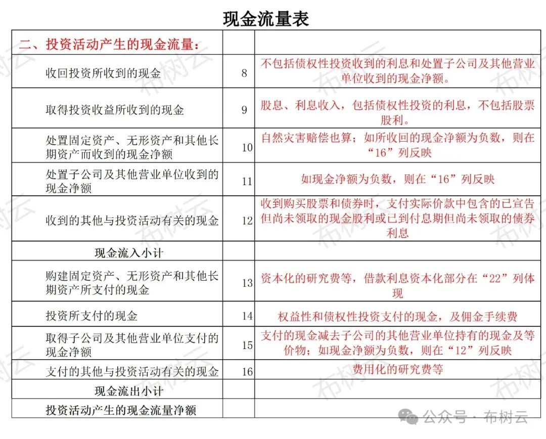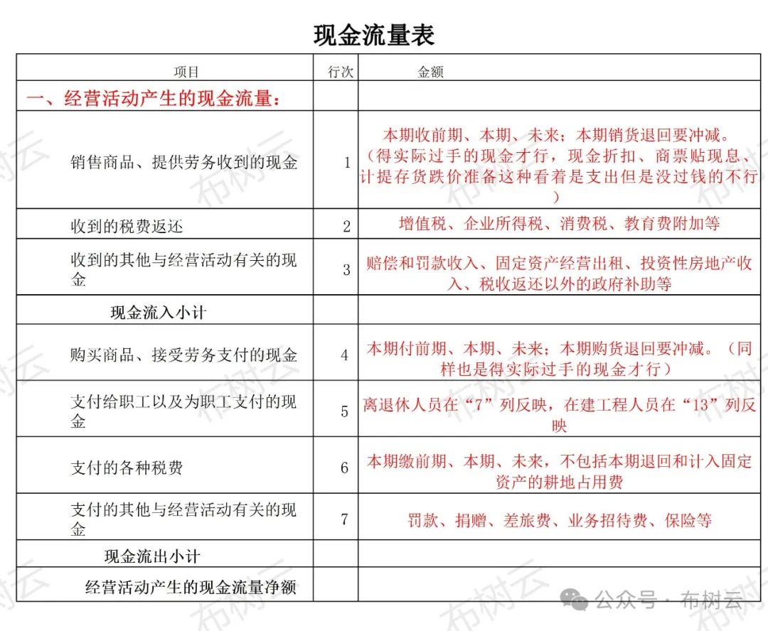 將凈利潤(rùn) (權(quán)責(zé)發(fā)生制)調(diào)節(jié)為經(jīng)營(yíng)活動(dòng)現(xiàn)金流量 (收付實(shí)現(xiàn)制) 采用間接法調(diào)整(以凈利潤(rùn)為起點(diǎn),調(diào)整非現(xiàn)金和非經(jīng)營(yíng)活動(dòng)的項(xiàng)目): ①實(shí)際沒(méi)有支付現(xiàn)金的費(fèi)用; (原來(lái)減,現(xiàn)在加) ②實(shí)際沒(méi)有收到現(xiàn)金的收益; (原來(lái)加,現(xiàn)在減) ③不屬于經(jīng)營(yíng)活動(dòng)的損益; (有加有減) ④經(jīng)營(yíng)性應(yīng)收應(yīng)付項(xiàng)目的增減變動(dòng)。 (有加有減) 從利潤(rùn)表到現(xiàn)金流量表的具體調(diào)整方法: 凈利潤(rùn) (利潤(rùn)表中) 加:①資產(chǎn)減值準(zhǔn)備。②信用損失準(zhǔn)備 (如: 壞賬準(zhǔn)備)。③固定資產(chǎn)折舊(只考慮提取數(shù), 不考慮處置、報(bào)廢等減少數(shù))。④無(wú)形資產(chǎn)和長(zhǎng)期待攤費(fèi)用的攤銷。 (此①-④因?yàn)槭菦](méi)有支付的費(fèi)用,所以需要加回) 加:⑤處置固定、無(wú)形和其他長(zhǎng)期資產(chǎn)的損失。⑥固定資產(chǎn)報(bào)廢損失。⑦凈敞口套期損失。⑧公允價(jià)值變動(dòng)損失。⑨財(cái)務(wù)費(fèi)用。⑩投資損失。 (次⑤-⑩假如產(chǎn)生的是收益則以 "-"號(hào)填列,因?yàn)椴粚儆诮?jīng)營(yíng)活動(dòng)的損益,需要反向調(diào)整) 上述①——⑩為利潤(rùn)表相關(guān)的項(xiàng)目 加:⑾遞延所得稅負(fù)債增加。⑿經(jīng)營(yíng)性應(yīng)付項(xiàng)目的增加,(⑾、⑿減少以 "-"號(hào)填列)。⒀遞延所得稅資產(chǎn)減少。⒁存貨的減少。⒂經(jīng)營(yíng)性應(yīng)收項(xiàng)目的減少,(⒀——⒂增加以 "-"號(hào)填列) 上述⑾——⒂為資產(chǎn)負(fù)債表項(xiàng)目 =經(jīng)營(yíng)活動(dòng)產(chǎn)生的現(xiàn)金流量?jī)纛~ 點(diǎn)晴模切ERP更多信息:http://moqie.clicksun.cn,聯(lián)系電話:4001861886 該文章在 2024/4/18 18:06:41 編輯過(guò) |