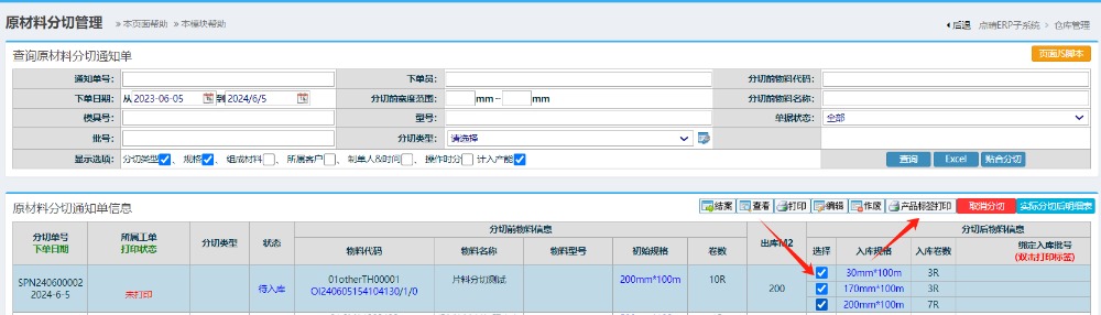 確認(rèn)后,回到分切管理界面去打印標(biāo)簽即可