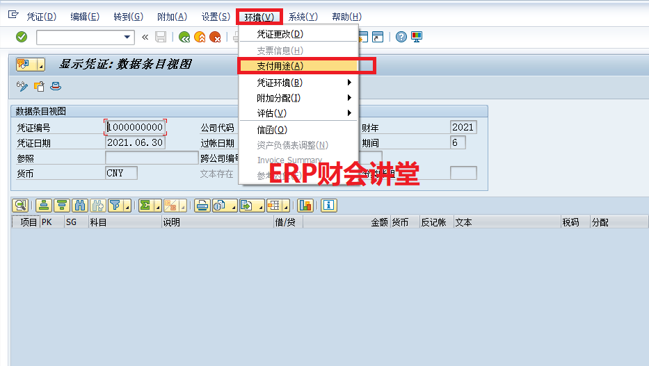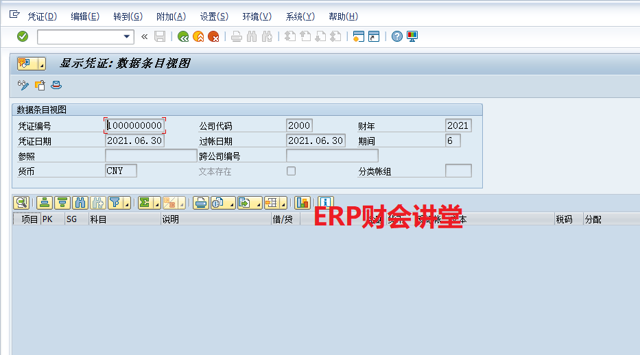 可以發(fā)現(xiàn),憑證1000000000是一個空憑證,只有抬頭,沒有項目。