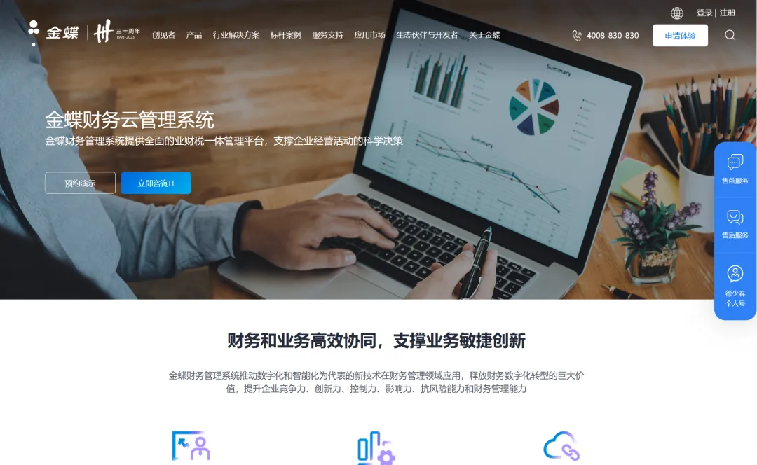 3、金蝶財(cái)務(wù)云 金蝶財(cái)務(wù)云管理系統(tǒng)提供全面的業(yè)財(cái)稅一體管理平臺(tái),支撐企業(yè)經(jīng)營(yíng)活動(dòng)的科學(xué)決策,助力大企業(yè)搭建對(duì)標(biāo)世界一流的財(cái)務(wù)管理體系,與大企業(yè)共商、共建、共享財(cái)務(wù)管理新世界。致力于幫助企業(yè)實(shí)現(xiàn)財(cái)務(wù)和業(yè)務(wù)“融為一體”,財(cái)務(wù)賦能并成就企業(yè)中的每一個(gè)人,實(shí)現(xiàn)人人自我驅(qū)動(dòng);財(cái)務(wù)和業(yè)務(wù)“高效協(xié)同”,支撐業(yè)務(wù)敏捷創(chuàng)新。
