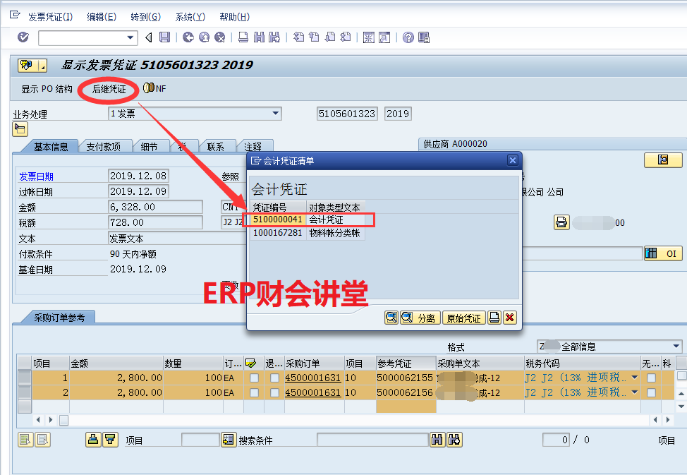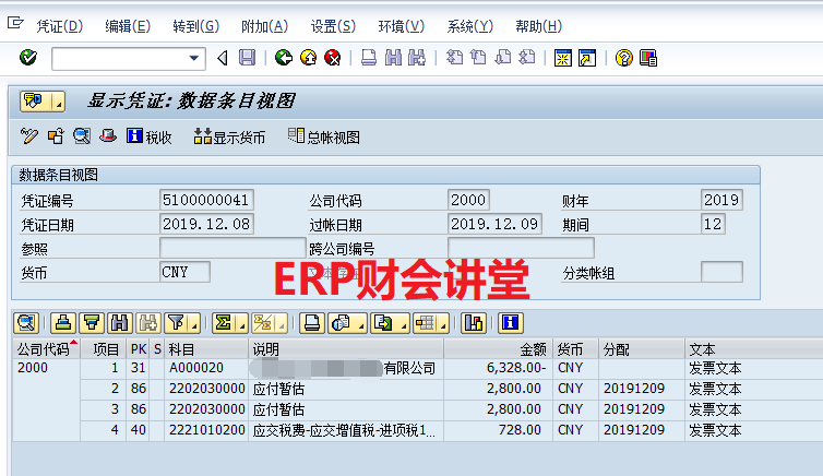 點擊保存按鈕生成系統(tǒng)發(fā)票憑證。MIR4查看發(fā)票憑證如下圖,