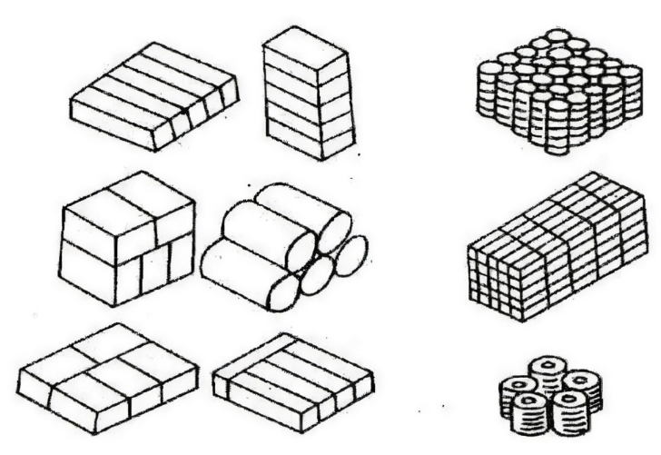 這種方法基于“五五成行,五五成方,五五成串、五五成堆,五五成層”的原則,使物料疊放整齊,便于點數(shù)、盤點和取送。 適用于產(chǎn)品外形較大、外形規(guī)則的貨物,主要形式包括平行五(平放五件)、直立五(直疊五件)、梅花五(五件環(huán)形排列)等。 ![]()