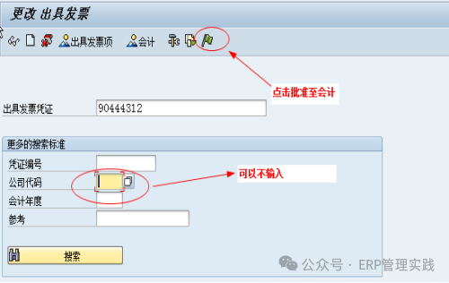 2、預(yù)制銷售發(fā)票過(guò)賬憑證(VF02) 財(cái)務(wù)人員輸入銷售發(fā)票憑證信息,點(diǎn)批準(zhǔn)至?xí)?jì)按鈕,完成銷售發(fā)票過(guò)賬;