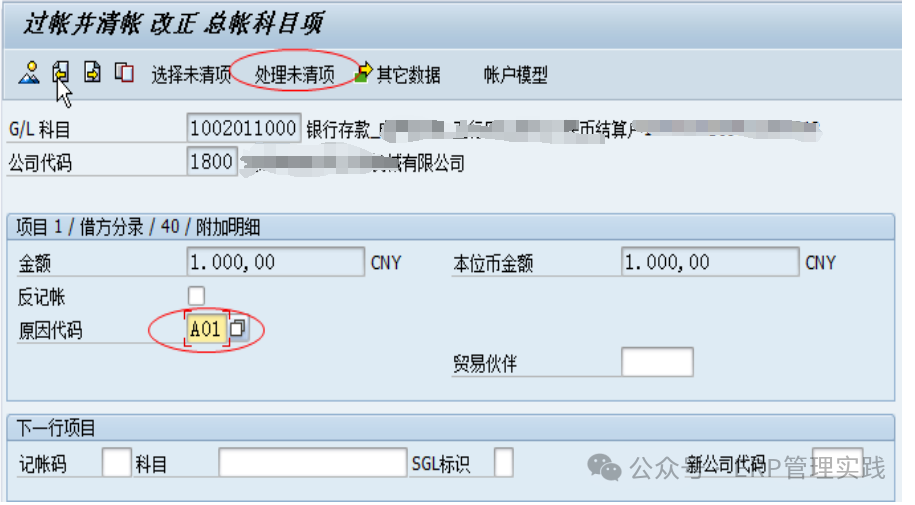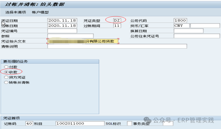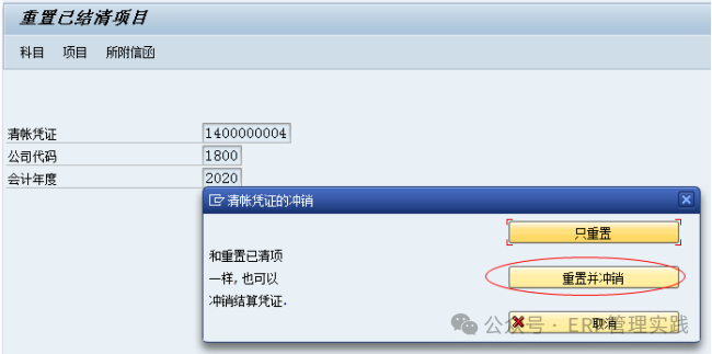 5、沖銷清帳憑證(FBRA) 若有錯(cuò)或異常,可對(duì)清賬憑證進(jìn)行重置并沖銷。