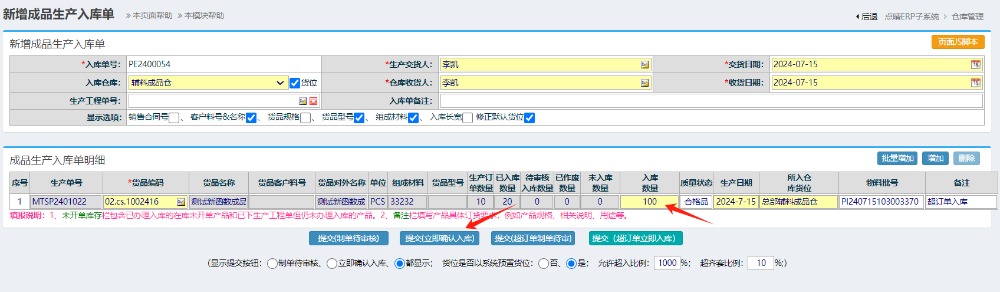 點晴模切ERP已結(jié)案的生產(chǎn)工單如何繼續(xù)做入庫操作