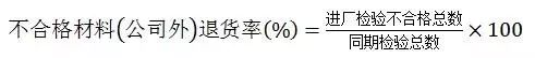 定義:一定時間內(nèi),進料檢驗合格數(shù)量除以進料檢驗數(shù)量所得。目的:用作結(jié)果度量,用來監(jiān)控供方供貨質(zhì)量水平。公式:進料檢驗合格率%=(進料檢驗合格數(shù)量/進料檢驗總數(shù)量)×100%。