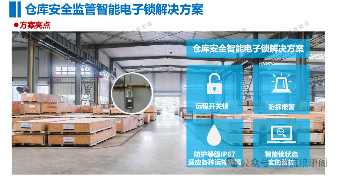 倉庫管理中的安全問題是不可忽視的,為了避免安全事故發(fā)生,必須加強安全管理和加強員工安全意識和技能的培訓(xùn),完善各種安全設(shè)備和保障措施,確保倉庫管理的安全運營。具體應(yīng)對措施: 1、建立安全制度 制定、完善和執(zhí)行安全管理制度,建立倉庫安全管理檔案,注重安全責(zé)任制,明確各崗位的安全職責(zé)和義務(wù),以及日常安全工作的記錄和匯報。 2、定期檢查維護 定期檢查倉庫設(shè)備和器材的狀態(tài),及時修繕和更換不良設(shè)備,如貨架結(jié)構(gòu)、電線等。對于儲物箱、保險柜等應(yīng)常年定期更換。 3、加強員工安全教育 對倉庫員工定期進行安全知識培訓(xùn)和操作技能的培訓(xùn),提高員工安全意識和技能水平。同時,制定安全操作規(guī)程,明確各個環(huán)節(jié)的操作標(biāo)準(zhǔn)和注意事項。 4、應(yīng)用物聯(lián)網(wǎng)技術(shù)與智能監(jiān)控 物聯(lián)網(wǎng)技術(shù)在倉庫安全管理中發(fā)揮著越來越重要的作用。物聯(lián)網(wǎng)技術(shù),可以實現(xiàn)對倉庫內(nèi)設(shè)備、貨物、人員的實時監(jiān)控和管理。通過安裝倉庫智能電子鎖,可以實時監(jiān)控人員的操作行為,還能自動識別和報警異常情況。【產(chǎn)品介紹】倉庫安全監(jiān)管智能電子鎖解決方案 此外,利用倉庫智能電子鎖可以對倉庫的各項安全數(shù)據(jù)進行匯總分析,為安全管理提供科學(xué)的決策依據(jù)。