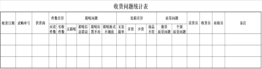 針對(duì)件數(shù)差異、箱嘜差異、裝箱差異、質(zhì)量差異制定的《收貨差異統(tǒng)計(jì)表》,明確記錄每一項(xiàng)差異明細(xì)。 2.收貨異常數(shù)據(jù)日趨圖