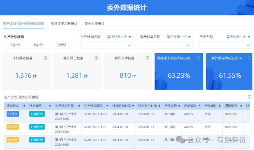 2、MES系統(tǒng)的應變能力——有了更好 MES系統(tǒng)的應變能力是指MES系統(tǒng)的適應性和靈活性,能否滿足企業(yè)的不同需求和變化。有這些功能的MES系統(tǒng)通常會更強大,適用性更強,體驗感更好。 (1)委外管理 當企業(yè)需要委托外部廠商或合作伙伴進行生產(chǎn)時,對委外生產(chǎn)流程進行全方位的管理和追蹤。