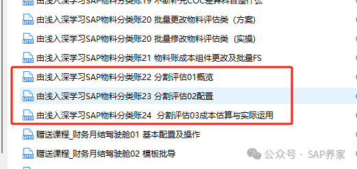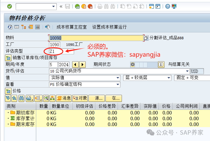 注意:我們說(shuō)的是不能,為什么? 我們思考下:半成品無(wú)論自制也好,委外也罷,對(duì)于成品來(lái)講都是一樣的。一旦我們搭成品BOM時(shí)半成品用了評(píng)估類型,那么是用Z1還是Z2呢?還是說(shuō)搭建2套BOM ,都不合適。因此我們說(shuō)不能。 但是呢,Z1 和Z2 的價(jià)格畢竟不一樣,我們?nèi)∧膫€(gè)呢?答案是取前面那個(gè)評(píng)估類型為空的那行。 這個(gè)空白行的價(jià)格,需要設(shè)定取Z1、Z2的比例??梢允?nbsp;五五開(kāi)、四六開(kāi)、三七開(kāi)等等。 比如:Z1價(jià)格10元,Z2價(jià)格12元,四六開(kāi)。空白行價(jià)格= 10*0.3 + 12*0.6=10.2 ,半成品轉(zhuǎn)到成品上的單價(jià)就是10.2 對(duì)于分割評(píng)估的運(yùn)用還是有些復(fù)雜的,我已經(jīng)錄好了視頻,已經(jīng)購(gòu)買了由淺入深學(xué)習(xí)SAP物料賬的朋友,可以直接去看22、23、24節(jié)。