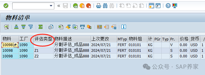 看到?jīng)],除了Z1、Z2 還有個(gè)空白的,為什么呢? 我們前面講過(guò),SAP中所有業(yè)務(wù)都要輸入評(píng)估類型,但是當(dāng)這個(gè)物料作為別人的BOM時(shí),就不能輸入評(píng)估類型了。