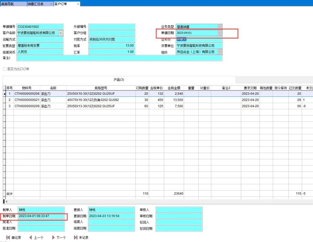 按訂單日期查詢 銷售匯總表上的按訂單日期查詢的訂單日期是指客戶訂單的單據(jù)日期,客戶訂單上有兩個(gè)重要的日期,單據(jù)日期和制單日期。默認(rèn)情況下單據(jù)日期就是制單日期,但是單據(jù)日期是可以手工修改的,比如今日是2號(hào),補(bǔ)做一張昨天的客戶訂單,那么單據(jù)日期就是1號(hào),而制單日期就是2號(hào)。單據(jù)日期是客戶訂單實(shí)際發(fā)生的日期,制單日期是在ERP系統(tǒng)中錄入客戶訂單時(shí)的日期。
