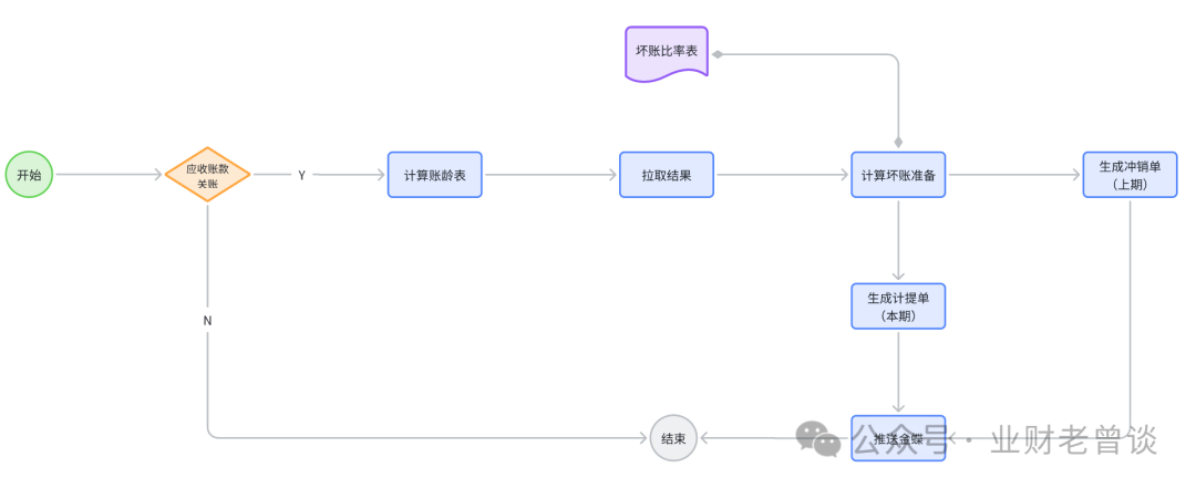 從上述分析可以得知,壞賬損失確認(rèn)、壞賬損失核銷、壞賬準(zhǔn)備轉(zhuǎn)回依賴前端業(yè)務(wù)或客戶的相應(yīng)證據(jù)鏈證明應(yīng)收賬款無(wú)法收回(比如客戶是恒大、OFO之類),且這些證據(jù)經(jīng)流程審批后才可入賬,需會(huì)計(jì)的職業(yè)判斷,無(wú)法自動(dòng)化入賬;相反,工作量最大、規(guī)則較穩(wěn)定的壞賬準(zhǔn)備計(jì)提可以實(shí)現(xiàn)自動(dòng)化入賬,實(shí)現(xiàn)業(yè)務(wù)到財(cái)務(wù)的一體化流轉(zhuǎn)。壞賬準(zhǔn)備的計(jì)提方法有四種:即“余額百分比法”、“賬齡法”、“銷貨百分比法”和“個(gè)別認(rèn)定法”,實(shí)務(wù)中以賬齡法和個(gè)別認(rèn)定法居多。解決方案:整沖整提法,即先將上期的沖銷再計(jì)提本月的壞賬準(zhǔn)備。將“壞賬準(zhǔn)備”當(dāng)作一個(gè)池子,每月先將上月的水(壞賬準(zhǔn)備)排干凈,再放入本月的水(壞賬準(zhǔn)備),這樣實(shí)現(xiàn)循環(huán)流轉(zhuǎn),保證每月都是最新、最準(zhǔn)確的壞賬準(zhǔn)備金額。至于壞賬損失的確認(rèn)與核銷、壞賬準(zhǔn)備的轉(zhuǎn)回即時(shí)發(fā)生隨時(shí)入賬。這樣把復(fù)雜的增量計(jì)提化繁為簡(jiǎn),賬務(wù)更清晰、核算更簡(jiǎn)單高效。- 同一筆應(yīng)收賬款在不同期間有不同的賬齡,繼而有不同的壞賬計(jì)提比例。